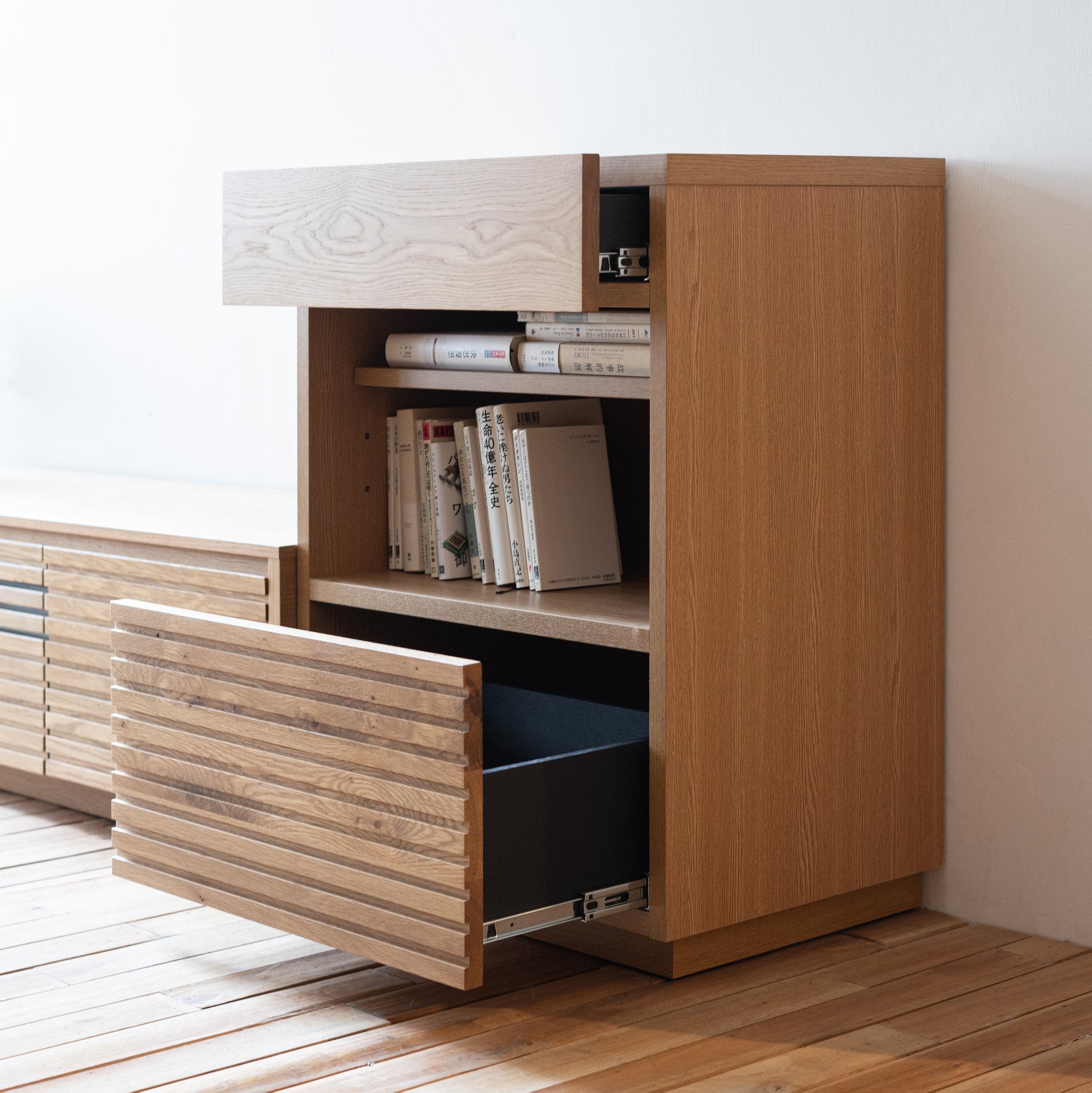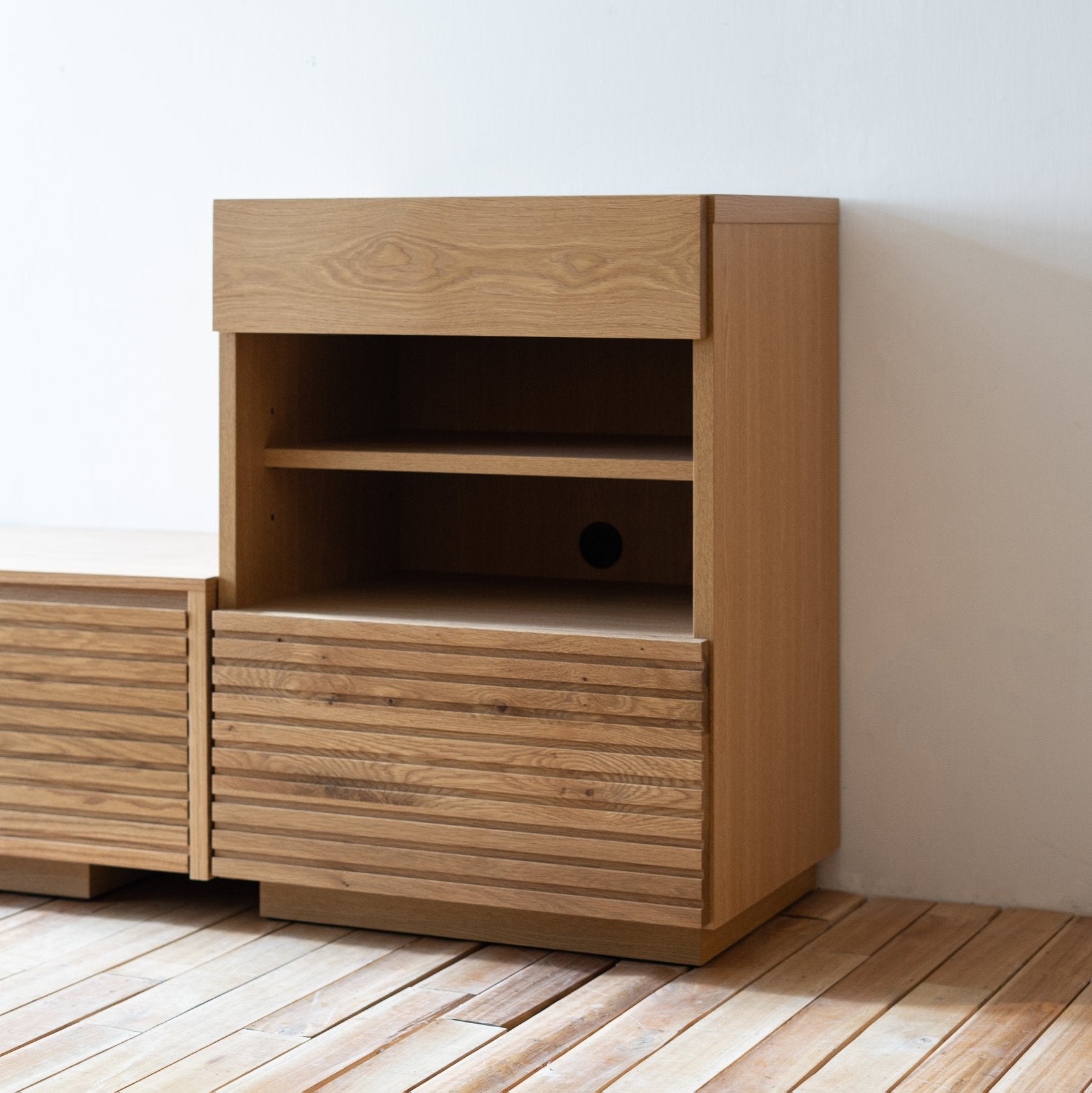 同系列的 ENN Open Cabinet,不但可增加收納空間,更可營造更長的電視組合櫃,特別適合較長身的客廳設計。
