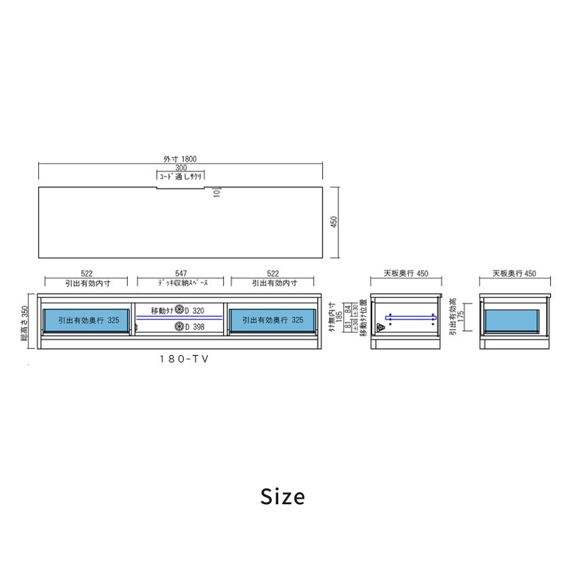 W1800 x D450 x H350 mm