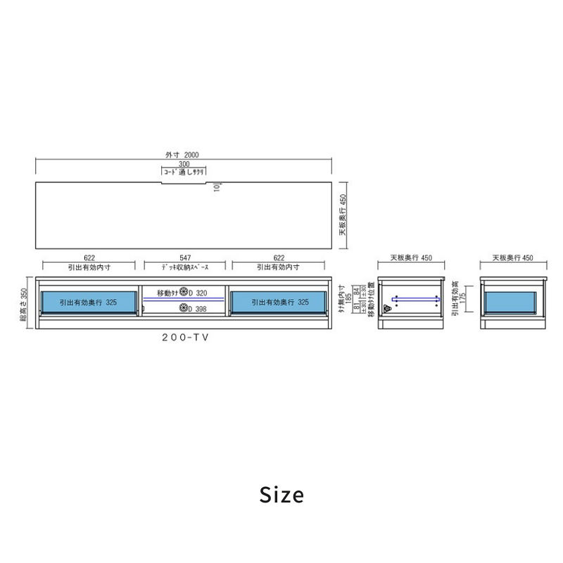 W2000 x D450 x H350 mm