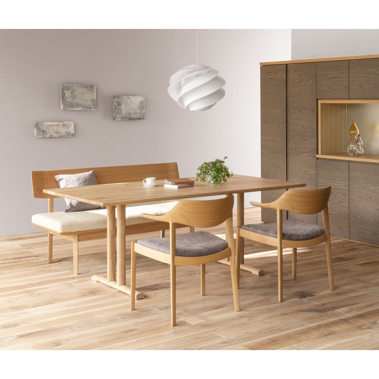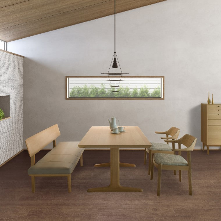 This is Hokkaido Oak in natural white color (urethane coating). It is a broadleaf tree of the Fagaceae family, including Mizunara and Konara. The heartwood is gray-brown with spots on the straight grain surface, and the wood is heavy and hard and easily split. It is used for furniture, whiskey barrels, flooring, etc. It is found in Japan, Russia, and China, and the oak produced in Hokkaido is collectively called Hokkaido Oak.