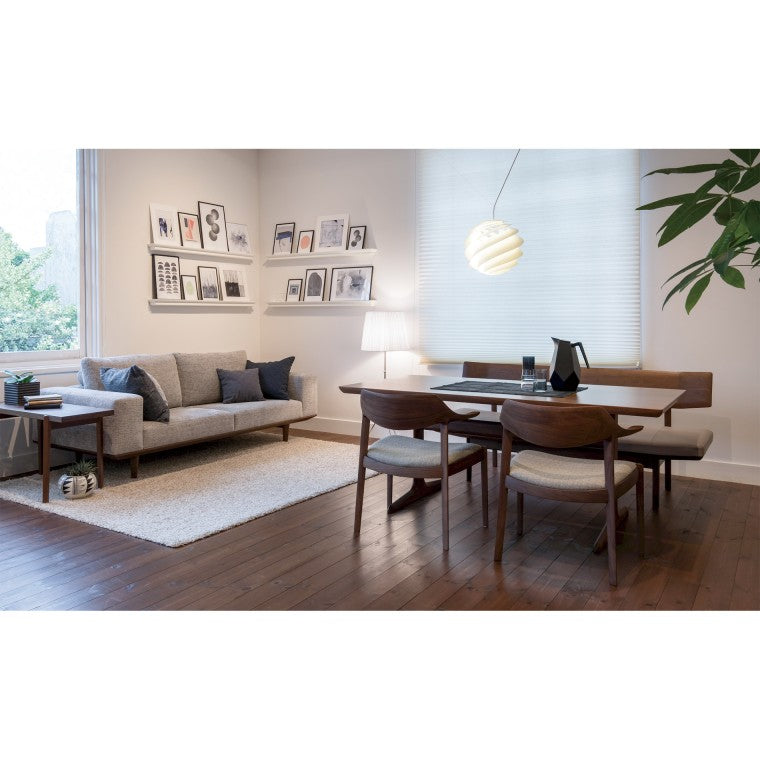 This is an original CondeHouse fabric created in collaboration with Hokkaido-born textile designer Kanako Kajiwara, and developed using domestically produced materials and manufacturing. It features a color scheme reminiscent of Hokkaido's rich nature and a dry texture.