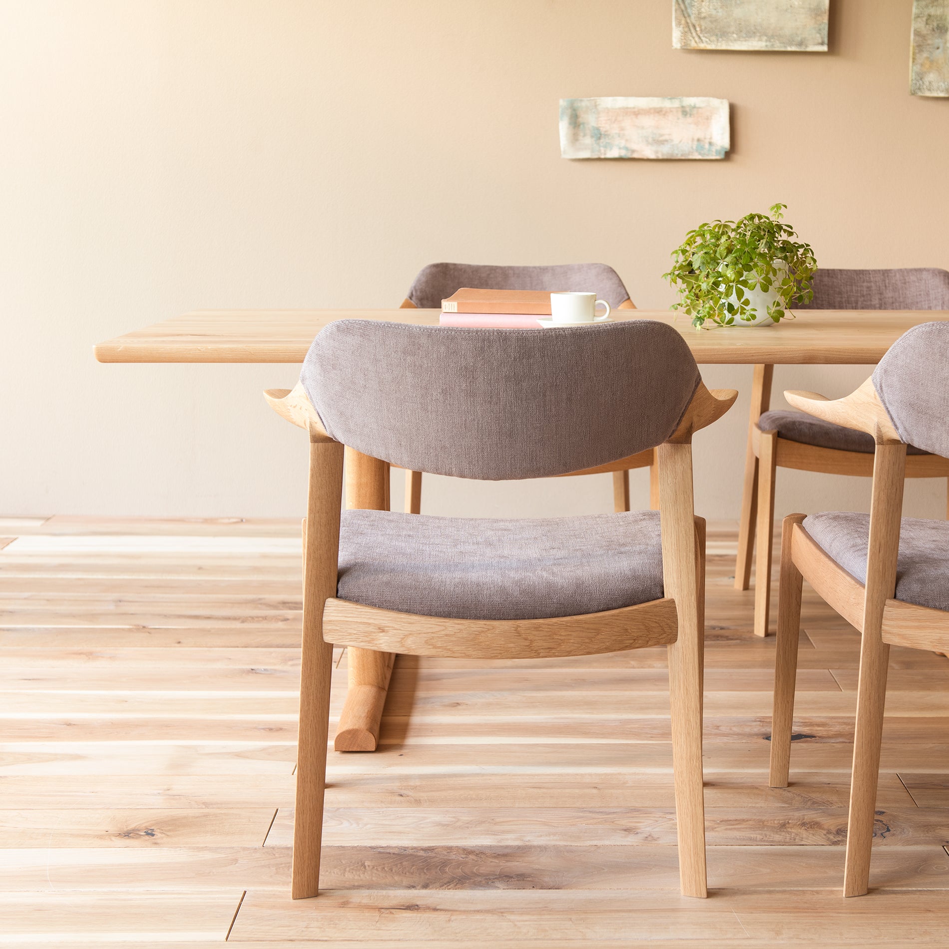 A simple design with a plain color that exudes a sense of quality, with a gentle texture that is mainly made of cotton material. This upholstery material brings out its quality when finished as a chair or sofa.