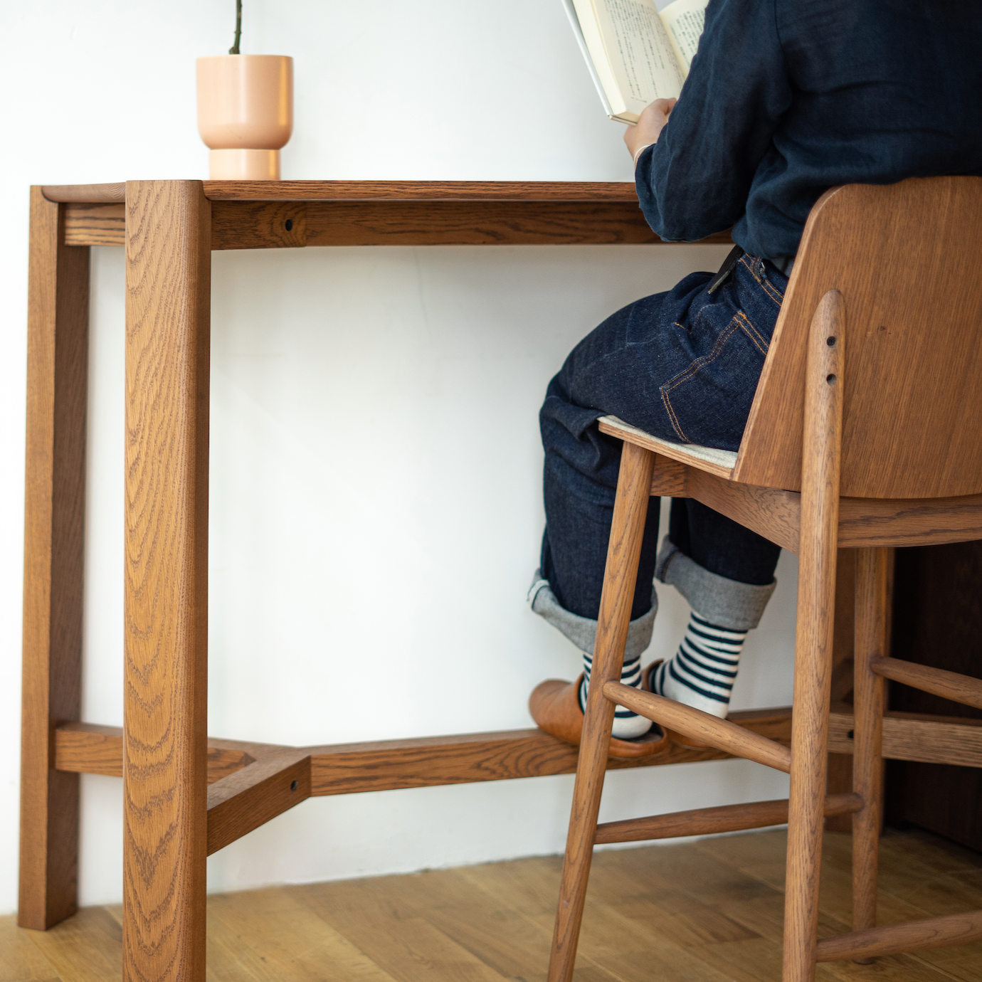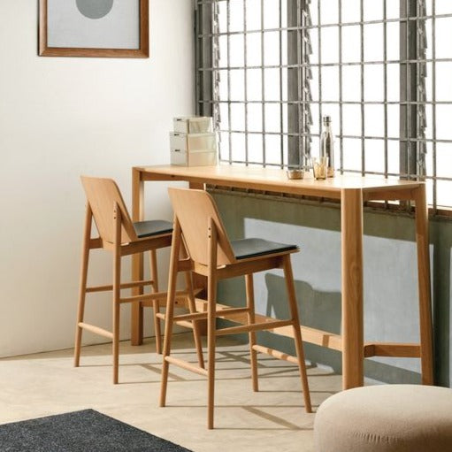Slon系列除了餐枱以外,這款Slon高枱是同系列的延伸,以全實木製造,腳部使用了仿入榫設計,四角為”L形”和帶有弧度的設計,讓整體線條變得更柔和,不容易碰撞受傷。而枱腳與腳之間的空間較大,共有W106cm輕鬆擺放兩張高櫈。Slon Bar Table 更提供自訂尺寸服務,適合不同家庭需要!