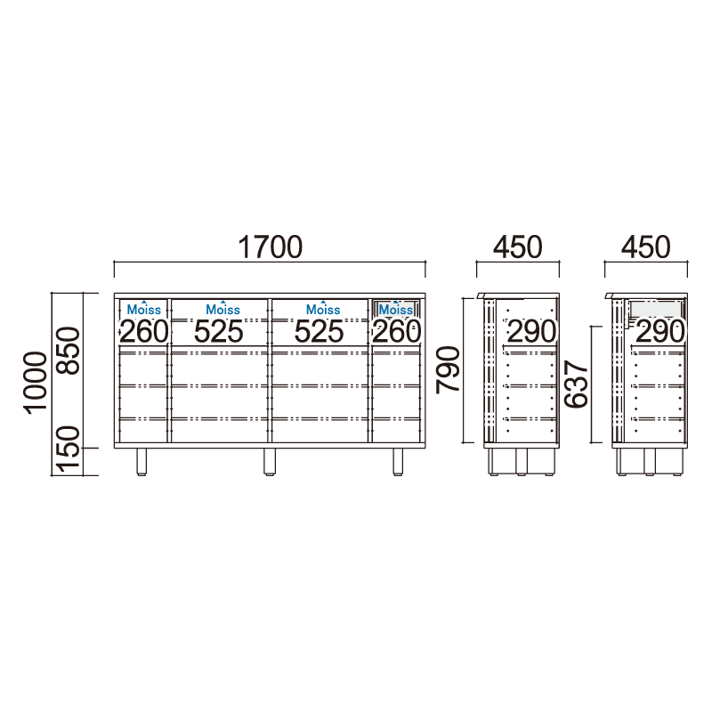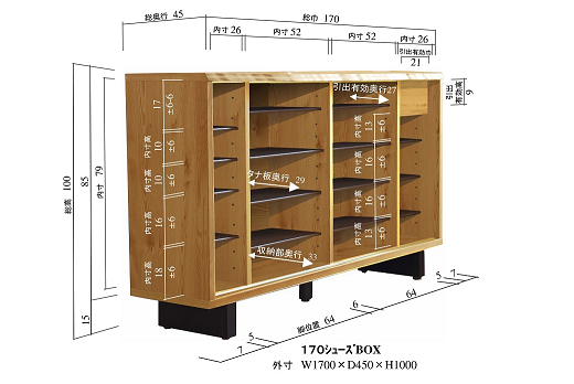 W1700 x D450 x H1000 mm