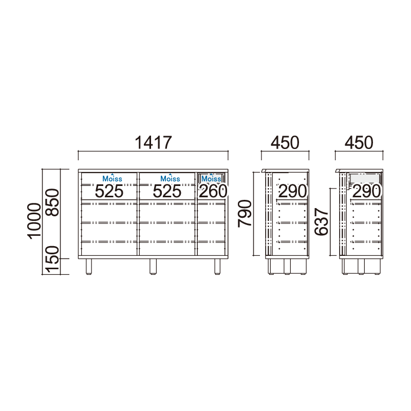 W1417 x D450 x H1000 mm