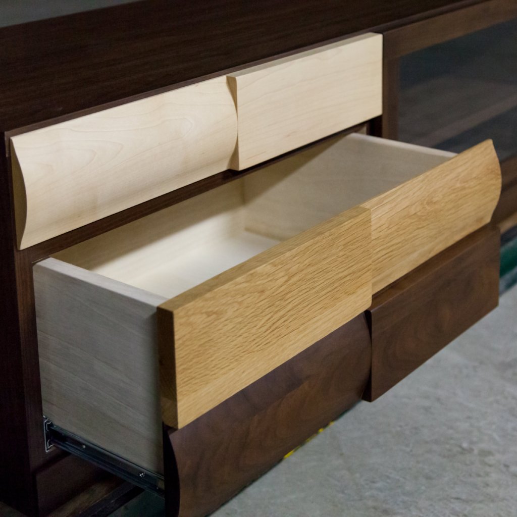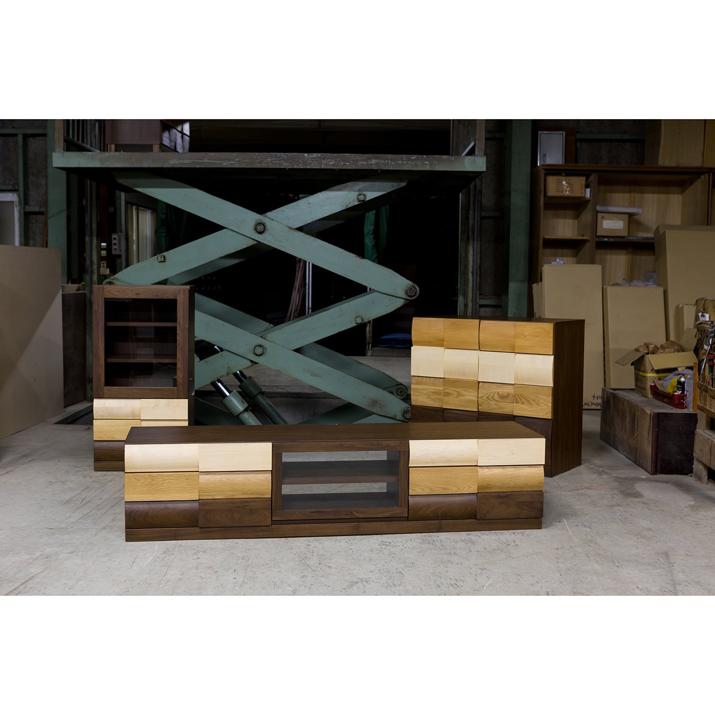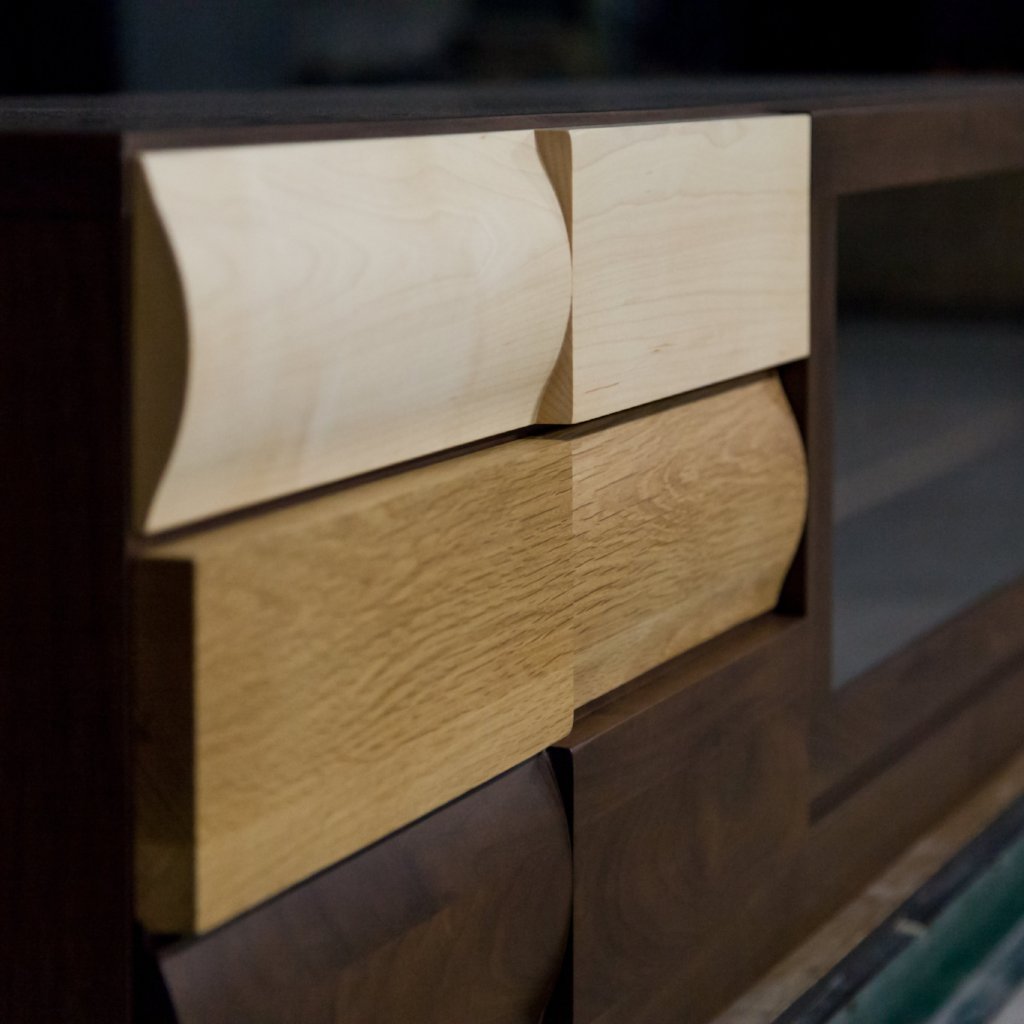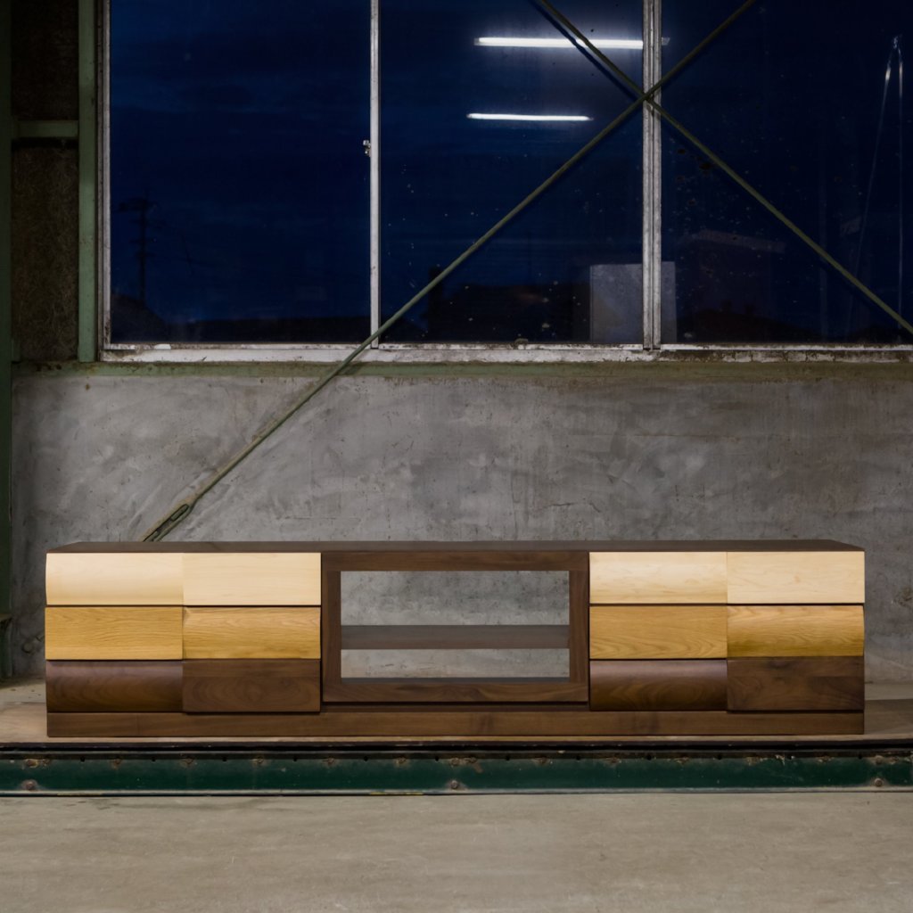 Popolo TV Board不論是在日本還是香港都非常受歡迎,一開始客人都是先被它的外表所吸引,除了以不同顏色的木材混合配搭外,孤度與平面的相互拼湊設計令它更為特別。