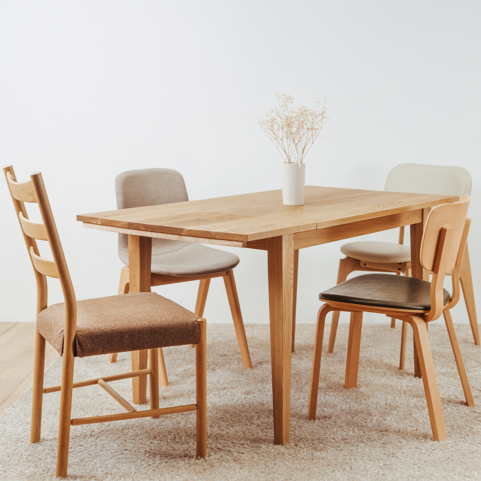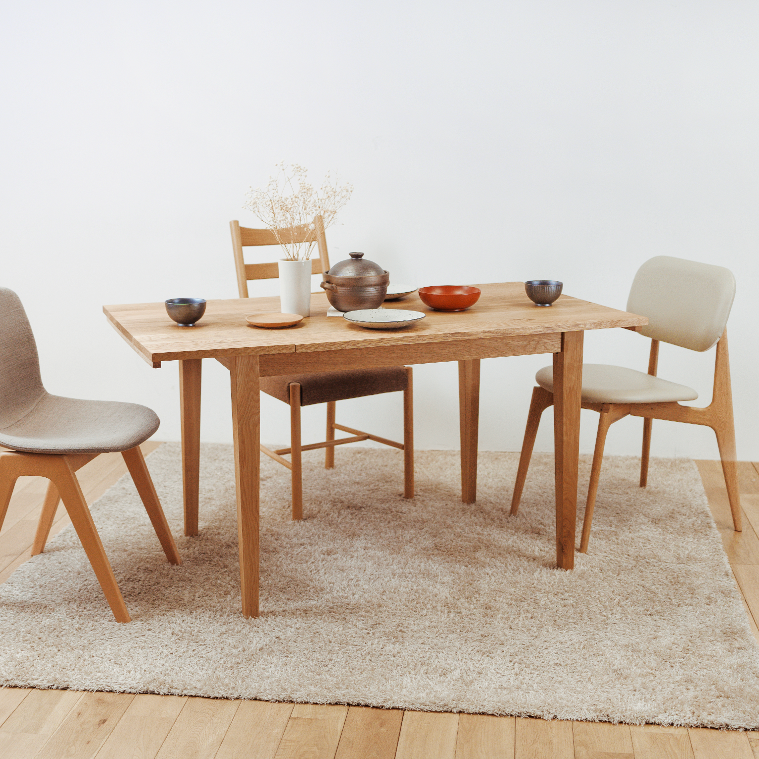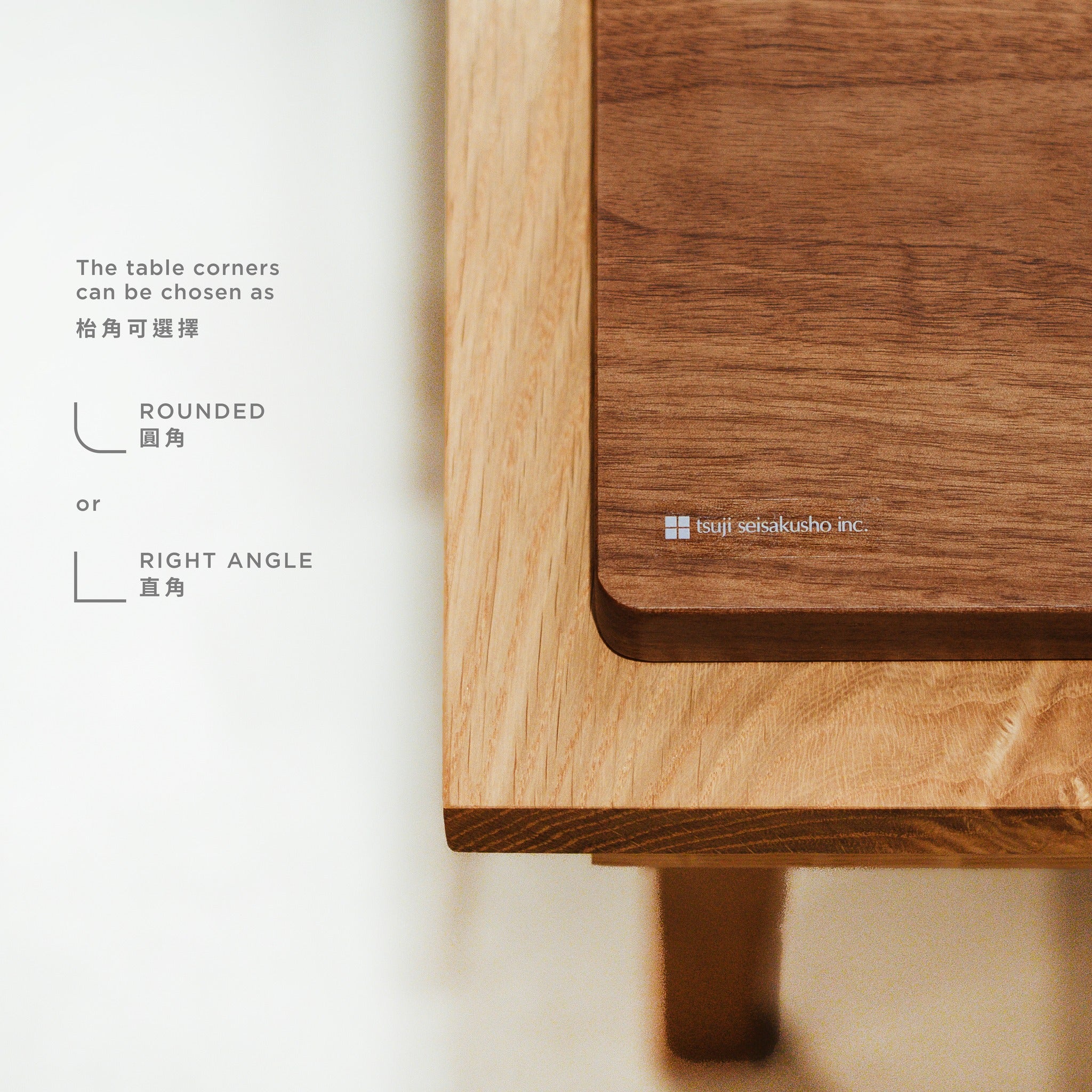 SAIKA Extension Table 使用美國橡木或胡桃木製造, 以實木製造,為了讓香港客人更多選擇,日本品牌辻製作所更提供直角及圓角的枱角選擇,符合不同客人的需要和喜愛。