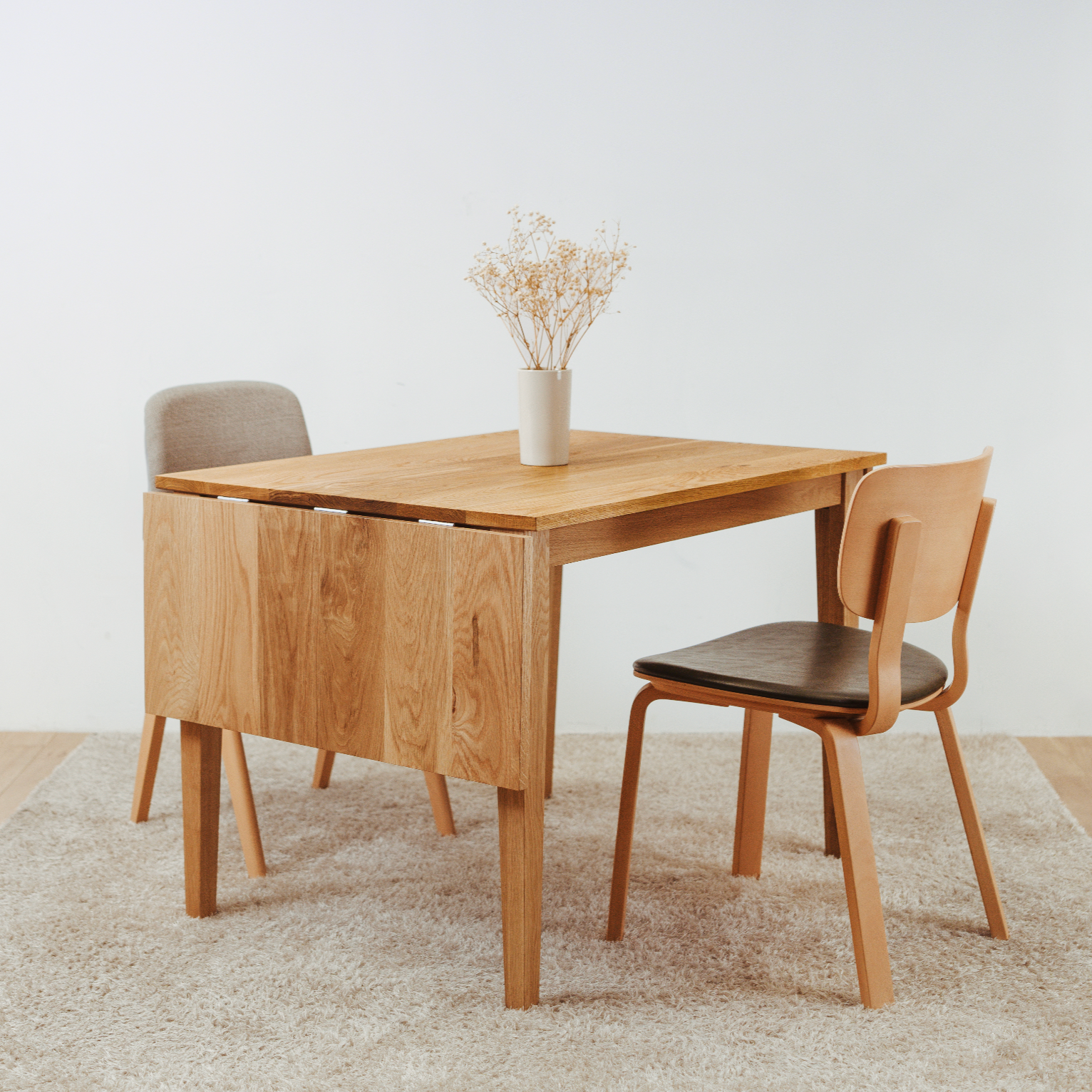 這款小型實木伸縮枱的另一亮點,是開合極方便,只要一推一拉便可以打開。SAIKA Extension Table 提供兩個尺寸分別為:由W75cm 變 W110cm 以及 由W100cm 變 W135cm!