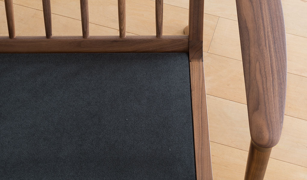 Walnut is one of the world's three major woods along with teak and mahogany. It is a high-class material with a subdued color and a beautiful heathered grain with a profound feeling. It will be polished and the texture will deepen as you use it. Hida Sangyo uses black walnut wood from North America.