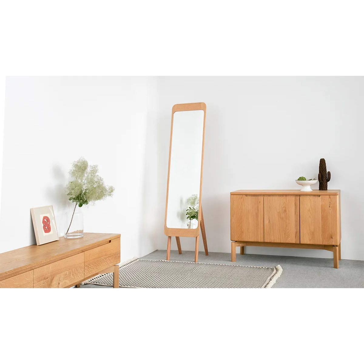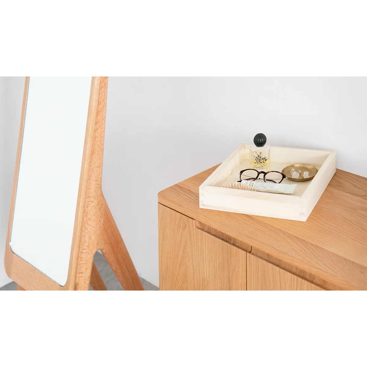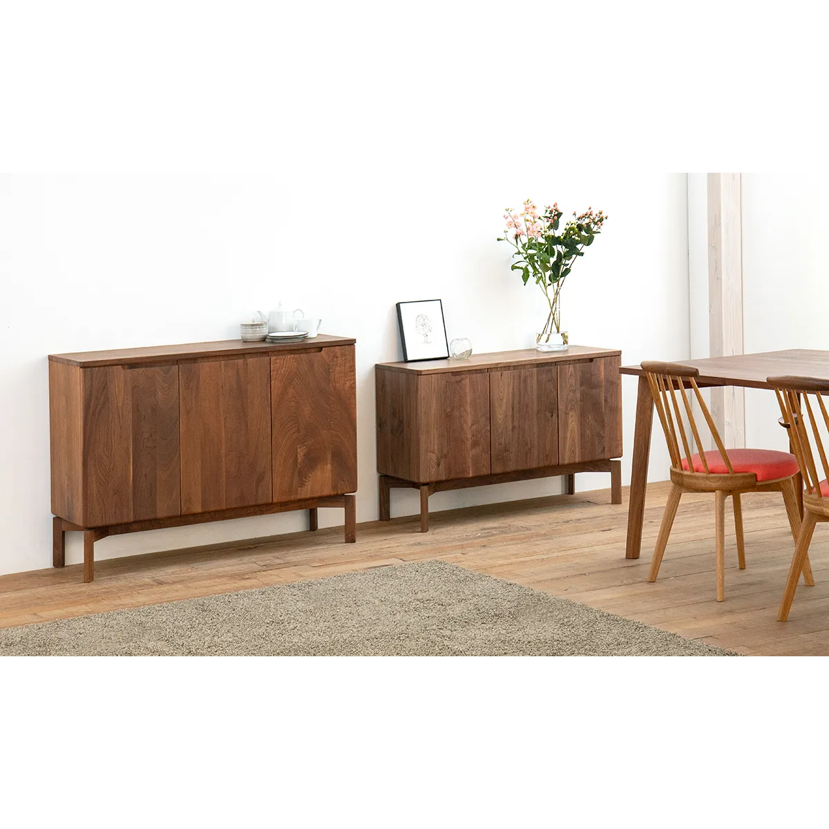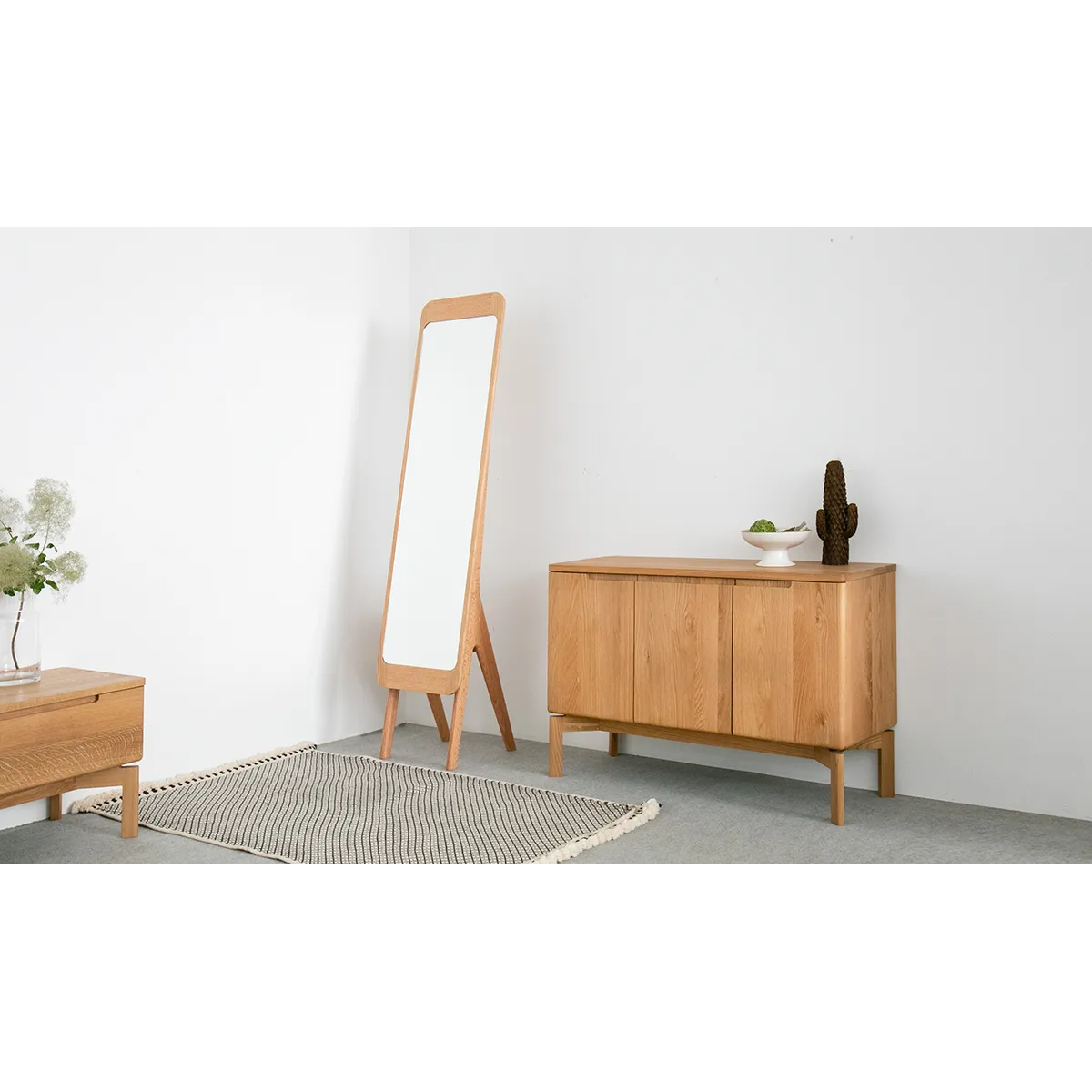 Mimosa Side Board 細膩的圓角設計,就算有小朋友也不怕撞到,而且更顯大方。下方腳部也隱藏了細緻設計,腳與櫃身之間加了一個縷空位置,令整體感覺更加輕盈。
