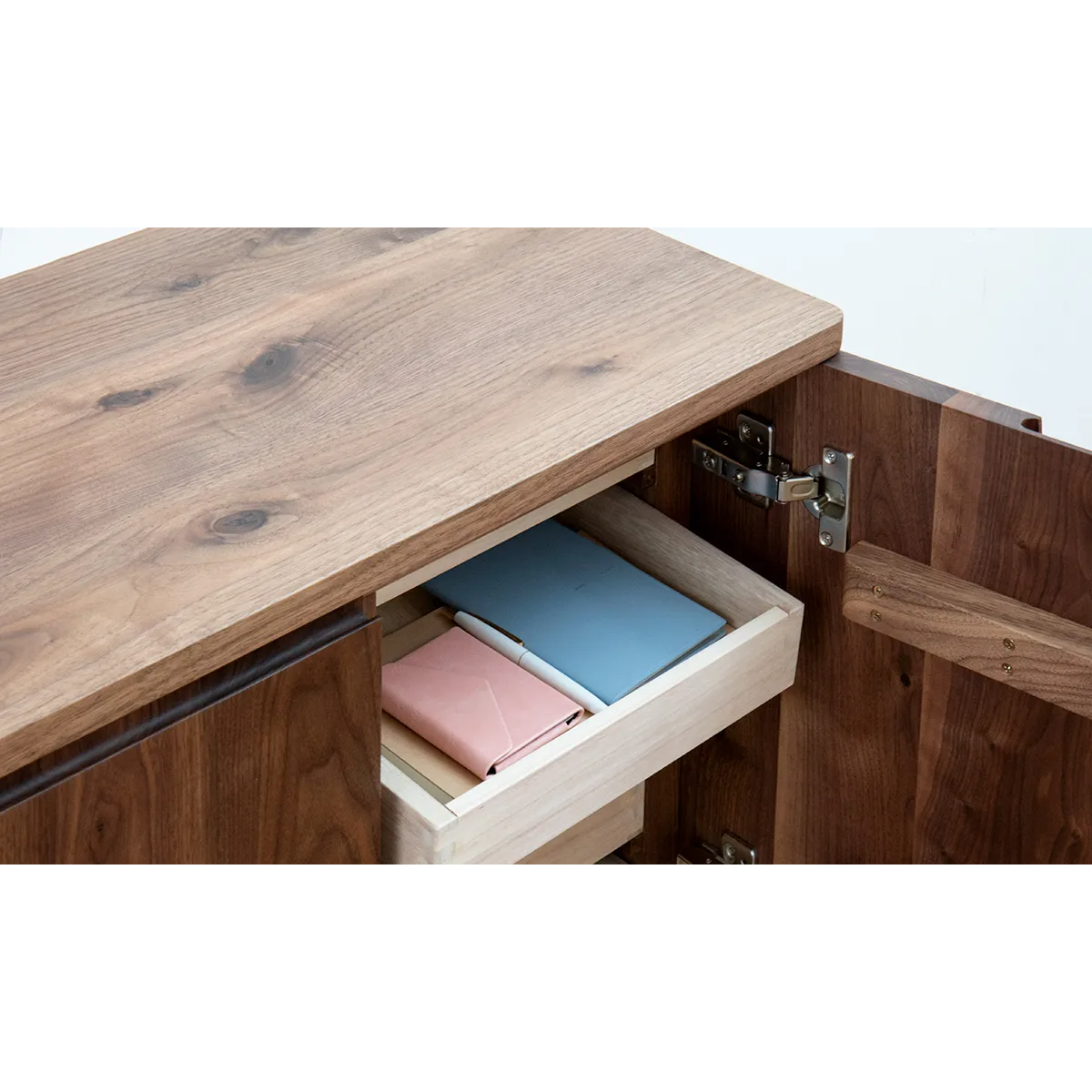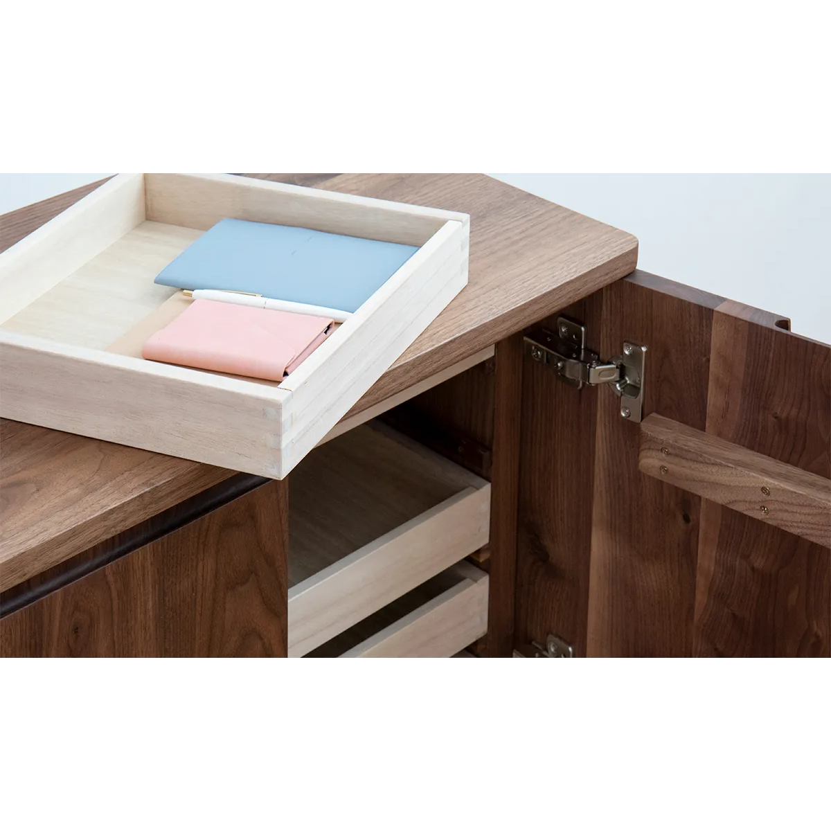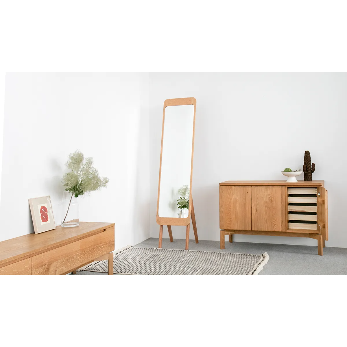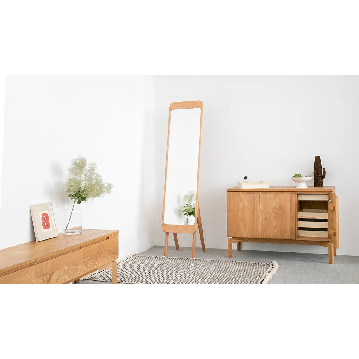 Mimosa Side Board 細膩的圓角設計,就算有小朋友也不怕撞到,而且更顯大方。下方腳部也隱藏了細緻設計,腳與櫃身之間加了一個縷空位置,令整體感覺更加輕盈。