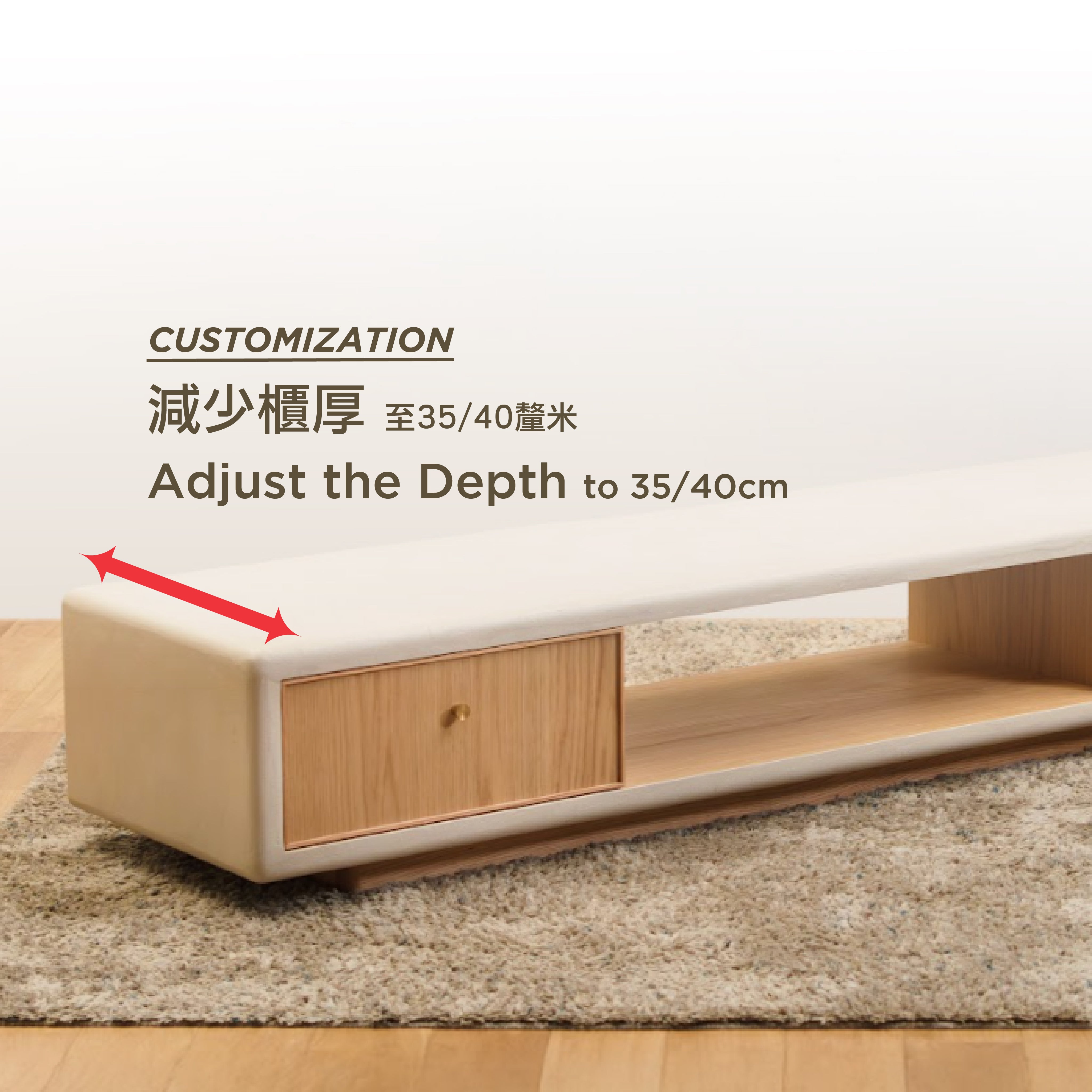 | 減少櫃厚(由D45改為D35或D40) Adjust the Depth of the TV Board to D35/40cm |