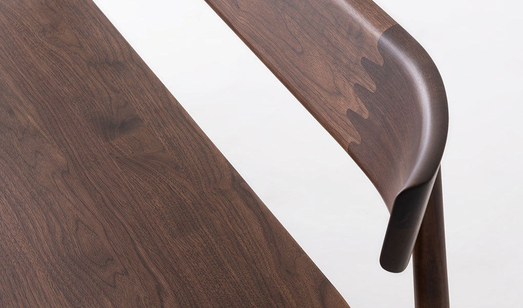 Walnut is one of the world's three major woods along with teak and mahogany. It is a high-class material with a subdued color and a beautiful heathered grain with a profound feeling. It will be polished and the texture will deepen as you use it. Hida Sangyo uses black walnut wood from North America.